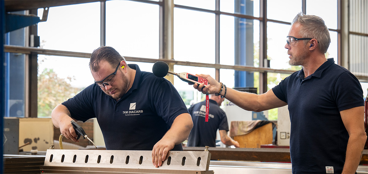 Sinds eind jaren negentig maakt TKM Diacarb deel uit van de internationale TKM-groep. Binnen die groep zijn zij het enige slijpbedrijf, waarmee ze een bijzondere positie innemen. Met zo’n posi- tie komt ook de verantwoordelijkheid om veilig en gezond te werken. Woudstra: “We hebben altijd geïnvesteerd in persoonlijke beschermingsmiddelen, training en onderhoud. Maar ons werk is ambachtelijk en dat vraagt om maatwerk. Je moet een product kunnen zien en voelen, en dat stelt grenzen aan bijvoorbeeld afschermingen of het werken met handschoenen.”