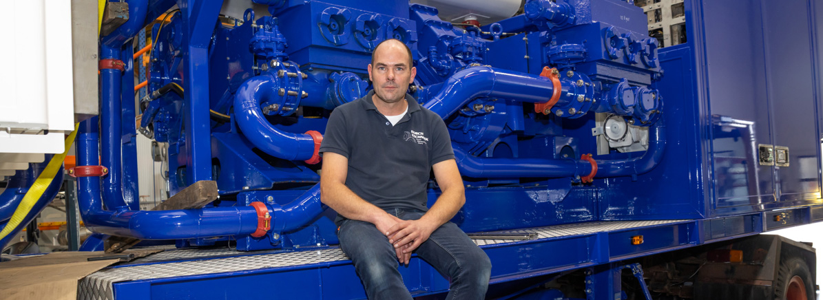 Powerpacks behoren tot de kernproducten. Het zijn compacte krachtcentrales die hydraulische tangen en ander gereedschap voeden voor het koppelen van buizen en het bedienen van afsluiters. Een powerpack bestaat uit hydraulische aandrijving, elektro- of dieselmotor, pomp en besturing. “We zien tegenwoordig steeds vaker elektromotoren.” Daarnaast bouwt Bosch Techniek batchmix tanks waarin cementslurry en chemicaliën tot een stabiel mengsel worden geroerd, dat daarna de put afdicht. De chemical injection skid doseert en verpompt de benodigde additieven. Heel concreet werkt het bedrijf nu aan twee compacte, elektrische machines voor het dichten van gasboorputten op kleine, krappe locaties in Noord-Nederland. “Eigenlijk het oude concept in een nieuw jasje.”
