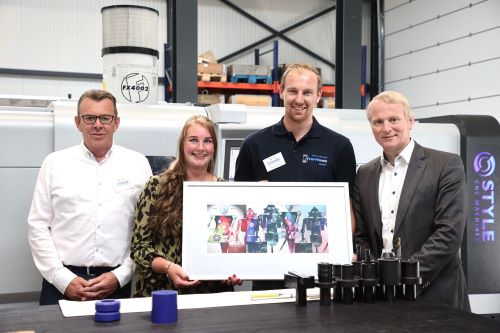 Regiosecretaris Philippe Hondelink overhandigde de familie Holtrop namens Koninklijke Metaalunie een schilderij en feliciteerde hen met het nieuwe pand. De nieuwe generatie bestaande uit broer en zus Anton en Jocé Holtrop is klaar voor de toekomst.