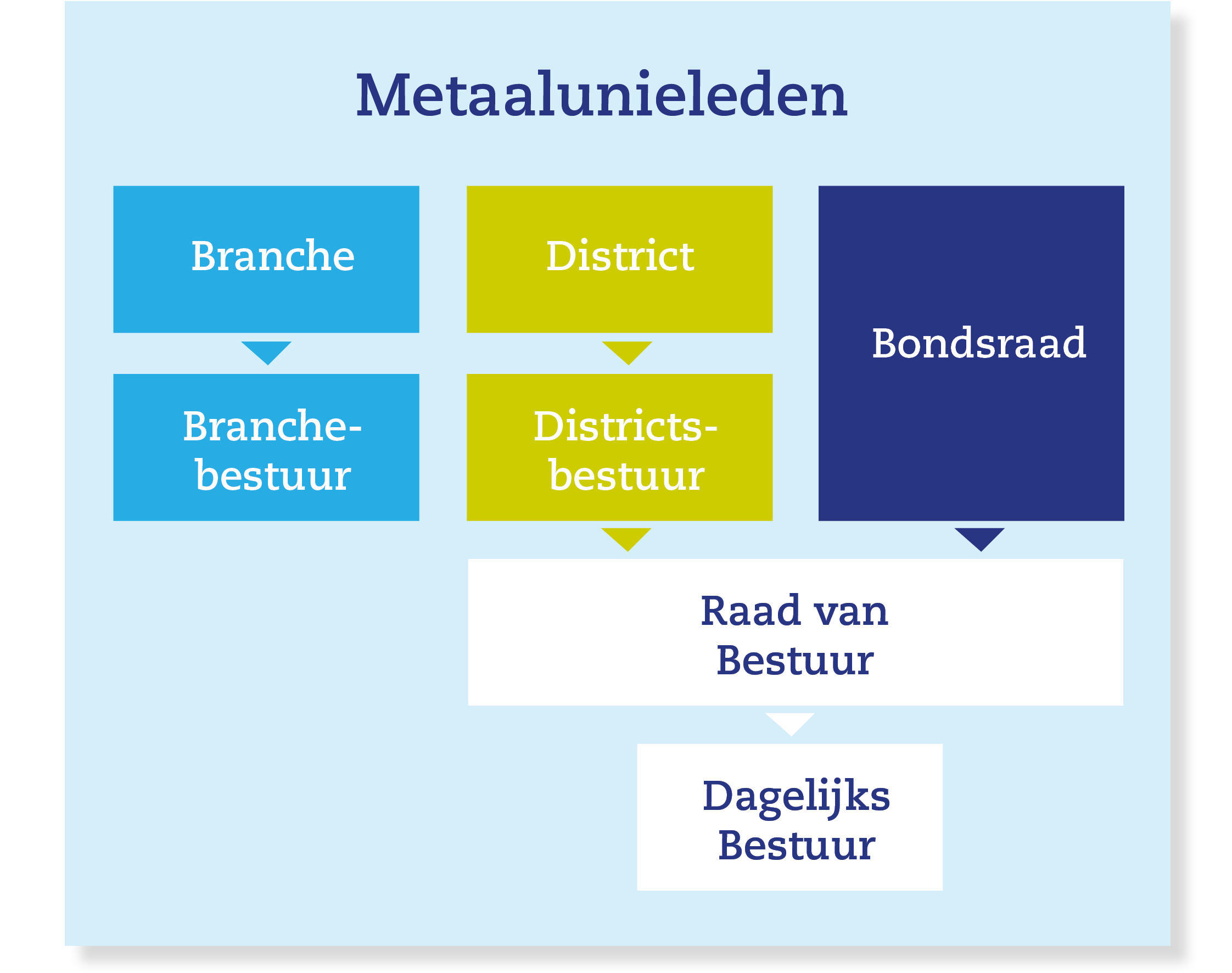 Niet alle Metaaluniemedewerkers hebben direct contact met leden. Toch werken bijna alle medewerkers direct voor de ondernemer. Metaalunie is een organisatie die van aanpakken weet en die effectief en efficiënt werkt. Iedere stem telt. Er zijn 300 regionale en landelijke bestuursleden, waardoor ondernemers veel te zeggen hebben binnen de vereniging. Dat maakt Koninklijke Metaalunie tot een organisatie van en vóór echte ondernemers.